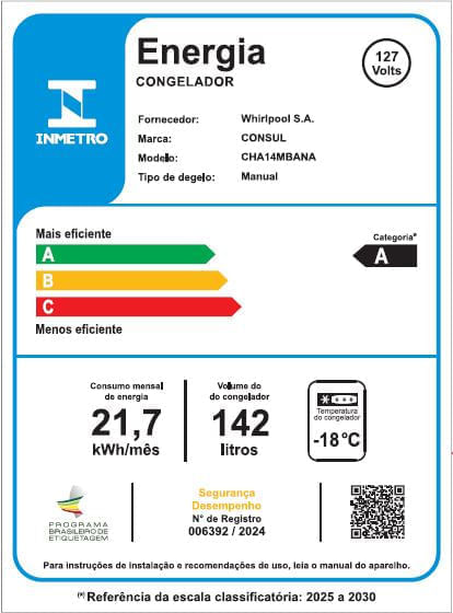 Seu Freezer Horizontal 142 litros com eficiência energética comprovada que economiza até 25% de energia elétrica no ano[1], sendo bom para o bolso e o planeta. É o complemento ideal para desocupar a geladeira, pois oferece o espaço que você precisa por dentro e um design que se encaixa perfeitamente em qualquer lugar da sua casa. É bem iluminado, com luz de LED econômica[2] e você pode escolher a temperatura sem precisar abrir a porta. Possui pés reguláveis e rodinha, se adaptando ao seu espaço. Ainda conta com cesto removível fácil de limpar e organizar, fechadura com chave. E para melhorar, não agride o meio ambiente e nem a camada de ozônio[3].